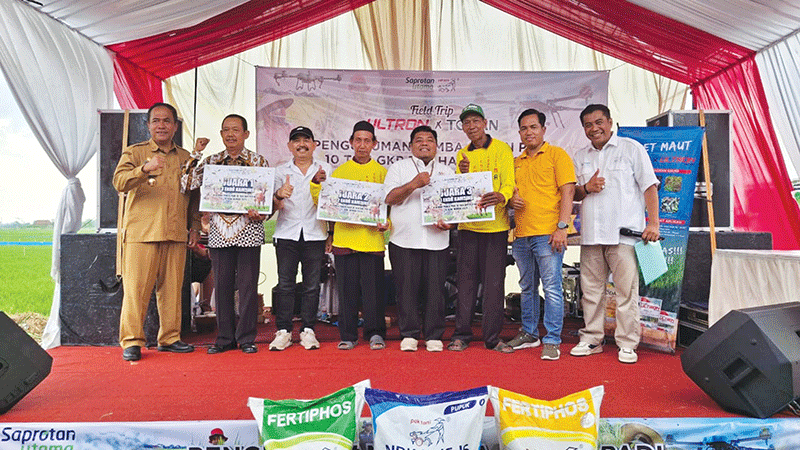 Lomba Panen Padi 10 ton GKP per Ha PT Saprotan Utama Nusantara di Demak, Jawa Tengah Sarana produksi yang tepat untuk meningkatkan panen. Tanaman terlindungi dari gangguan hama, penyakit maupun gulma. Petani tidak lagi bergantung pada pupuk subsidi.